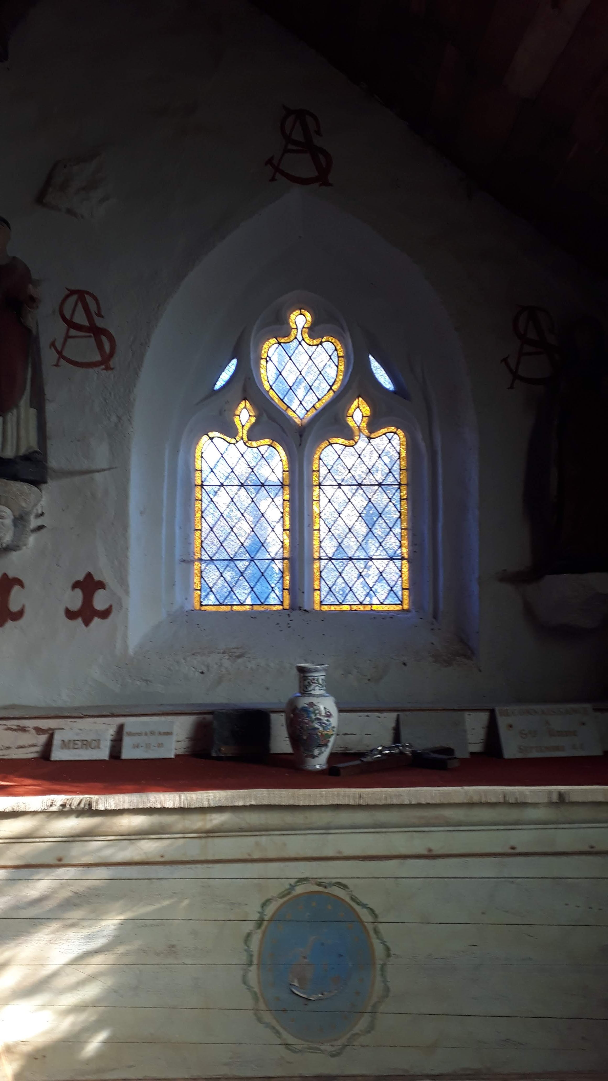 La chapelle est tres sombre les murs du fond abîmés par l'humidité.voir la fontaine Ste Anne