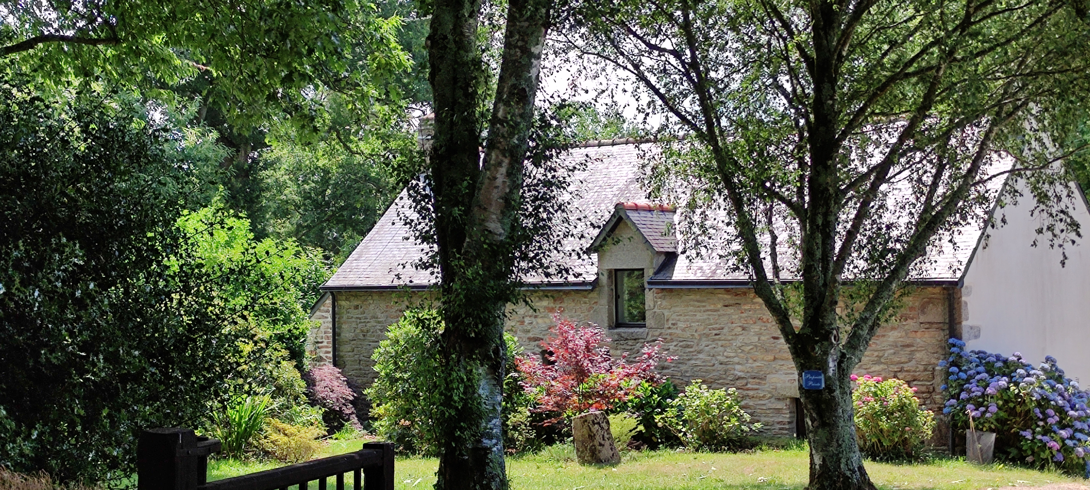 La chapelle dans laquelle est accroché le Jésus jaune qui sert de modèle au tableau du même nom de Gauguin. Super environnement. Des hortensias de toutes les couleurs et une magnifique allée de hêtres.