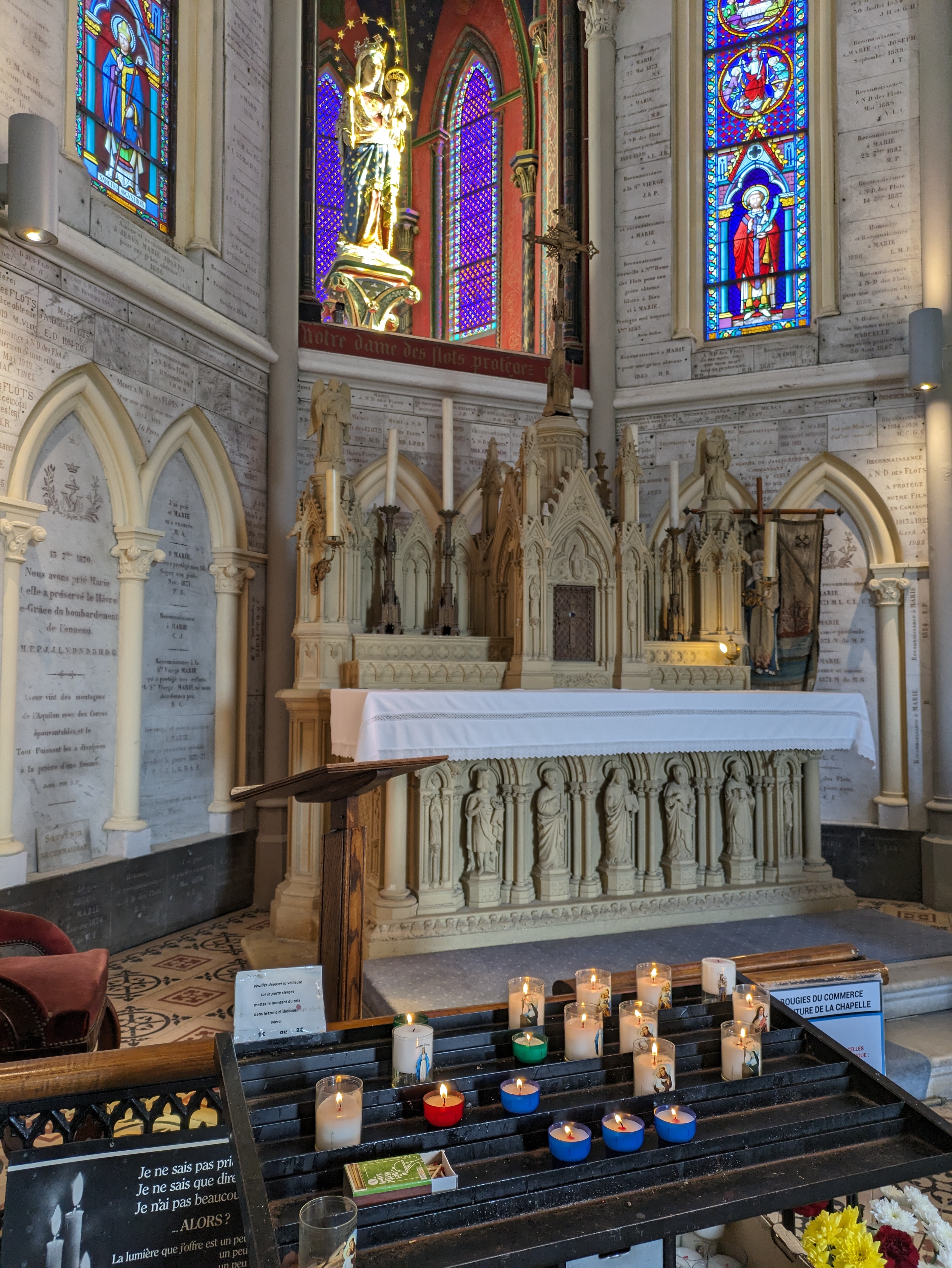 Depuis 1859, elle domine la falaise de Sainte-Adresse, Richement décorée, les murs sont couverts d’inscriptions, de remerciements, de tableaux, de maquettes. Le jardin des poètes entoure cette jolie petite église dédiée à la Vierge. La visite se mérite. Ça grimpe. La ruelle est étroite. Des places de stationnement sont disponibles plus haut.