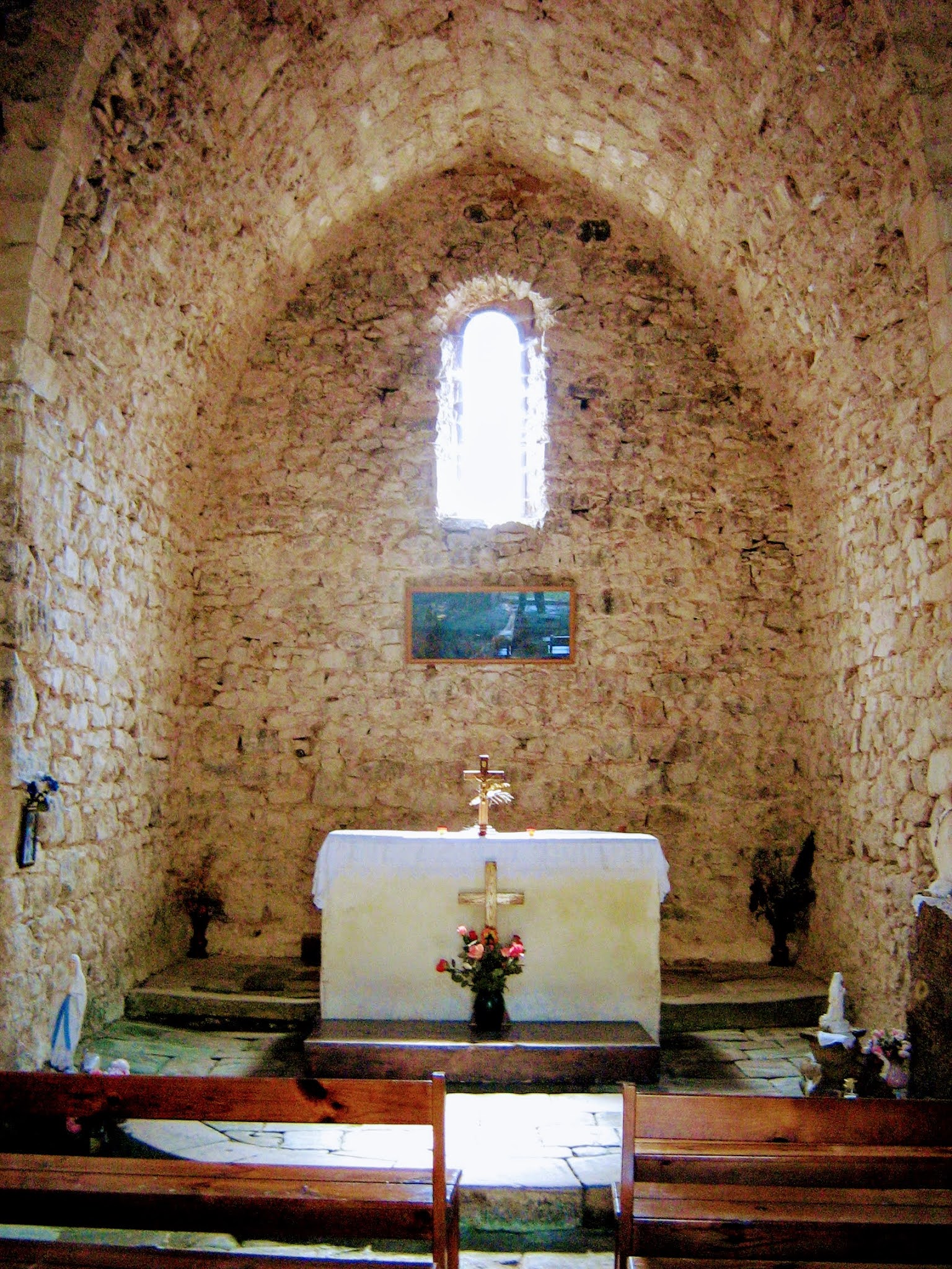 Pierre druidique dans la chapelle, mais des antennes placés partout dans les hauteurs.