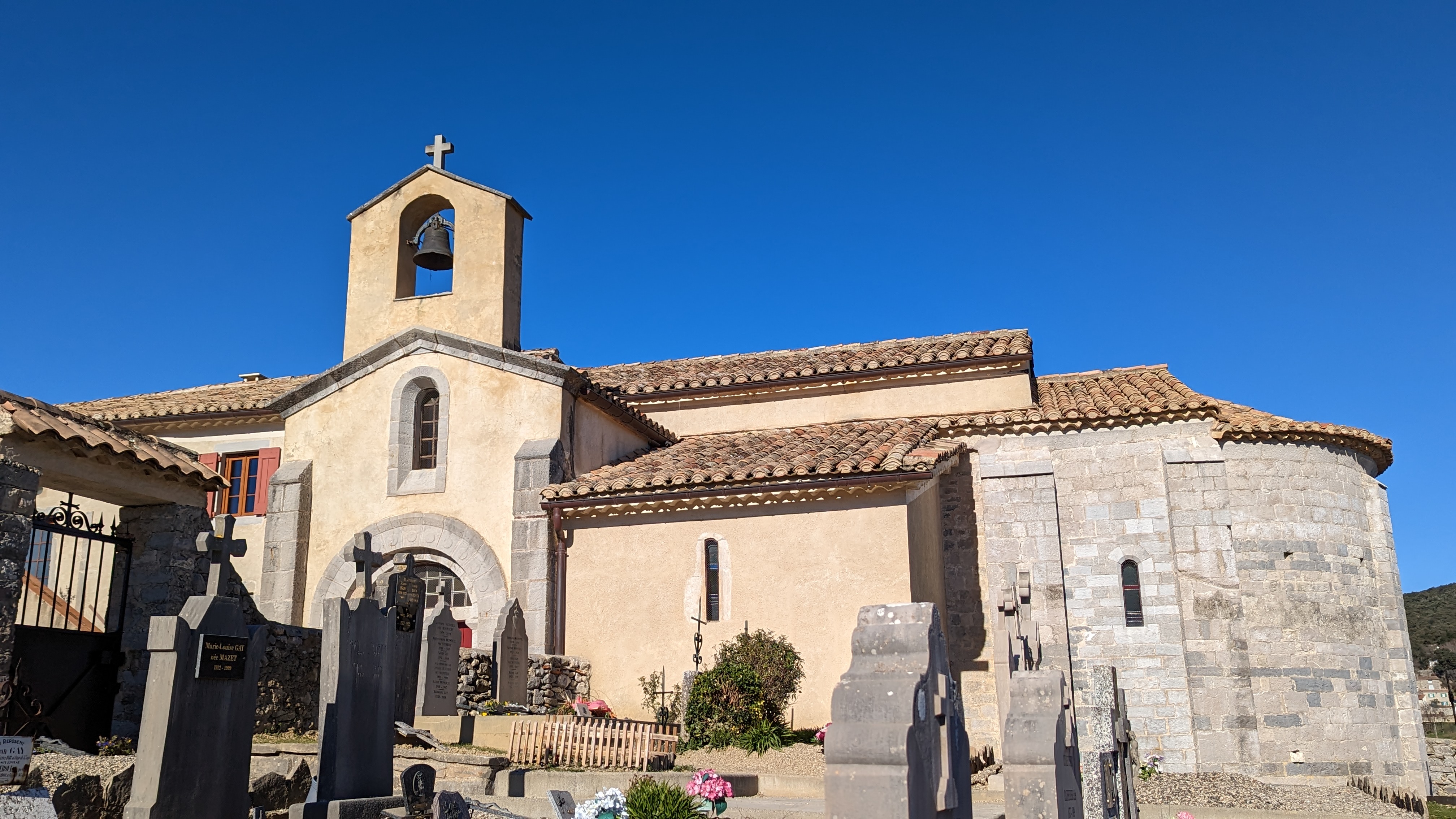 Jolie chapelle Saint Saturnin d Agones dont une partie date du XIII ème siècle et qui jouxte un petit cimetière . Malheureusement fermée au public
