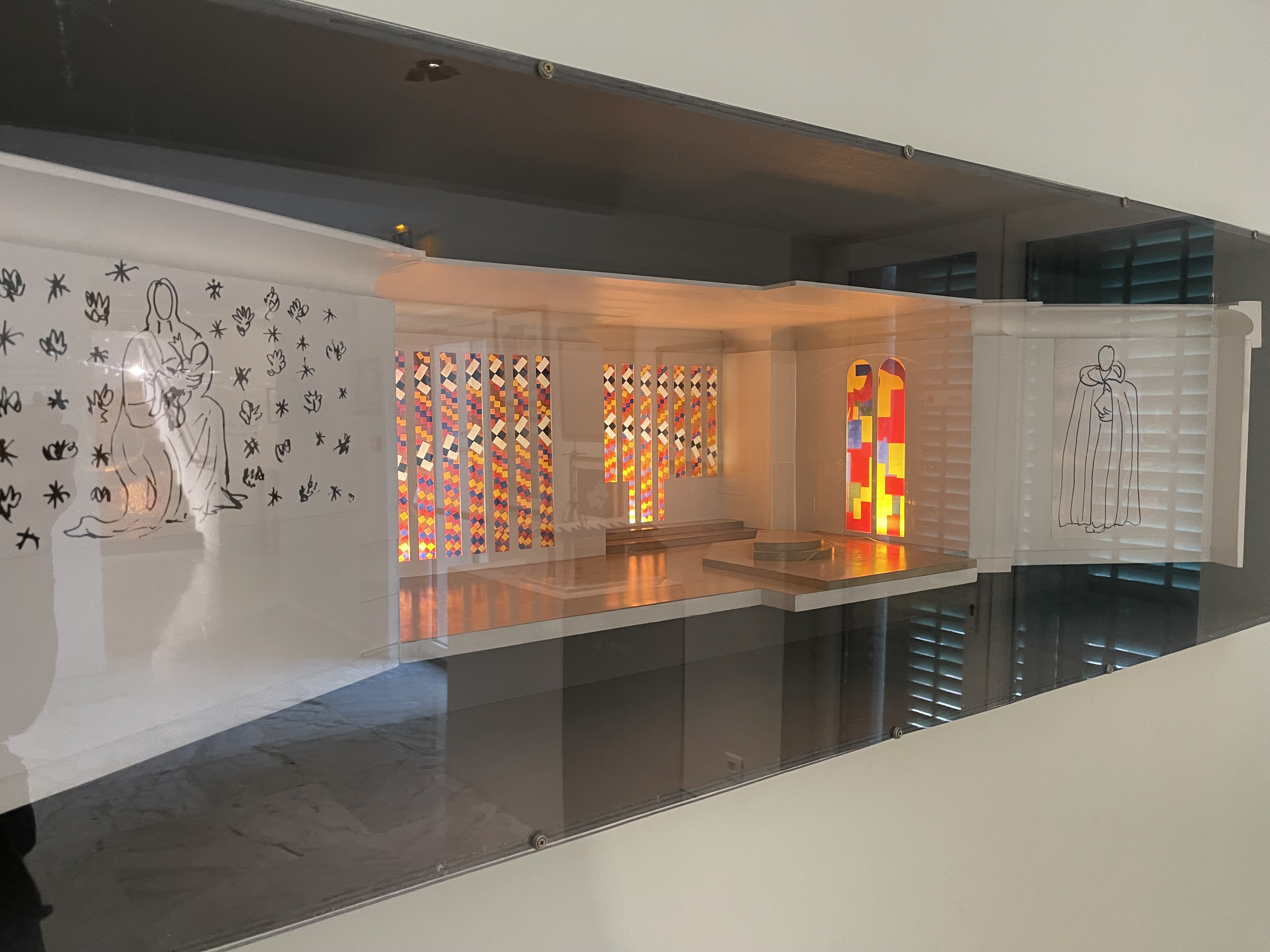 Dernière œuvre de Matisse, créée pour une amie religieuse. Salle lumineuse et décorée simplement. Les salles annexes qui racontent comment ça s'est fait sont passionnantes. Perso j'aurais préféré le projet précédent celui qui a finalement été retenu !