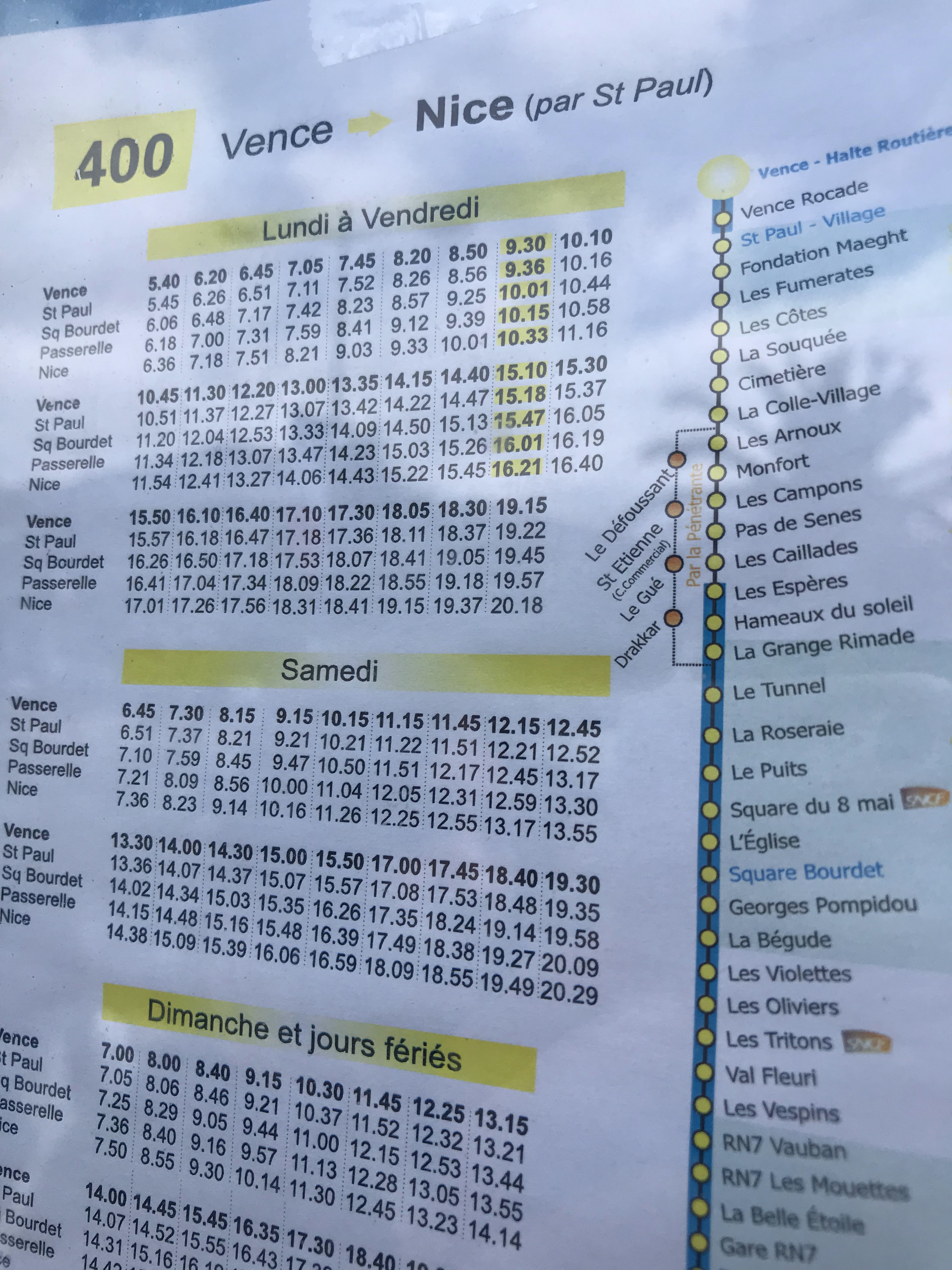 Petite mais très jolie chapelle Si vous venez de Nice Prenez le bus numéro 400 (vous pouvez le prendre à Albert Garden, près de l'hôtel Meridian et du McDonald's sur la côte). Vous pouvez vous rendre au dernier arrêt (1,5 euros). Il faut 15 à 20 minutes à pied depuis le dernier arrêt de Bunce. Horaires d'ouverture de la chapelle sur le chemin de Saint-Paul-de-Vence Ce serait une bonne idée de le vérifier et de passer. Le bus numéro 400 et le bus numéro 94 sont à environ Il y en a un toutes les 30 à 40 minutes. Après avoir fait le tour de la chapelle, prenez un bus pendant 1h10 à 20 minutes. Vous pouvez redescendre. C'est bien de prendre des photos à l'intérieur. or. Ira Je publie uniquement les itinéraires, les extérieurs et les horaires de bus.