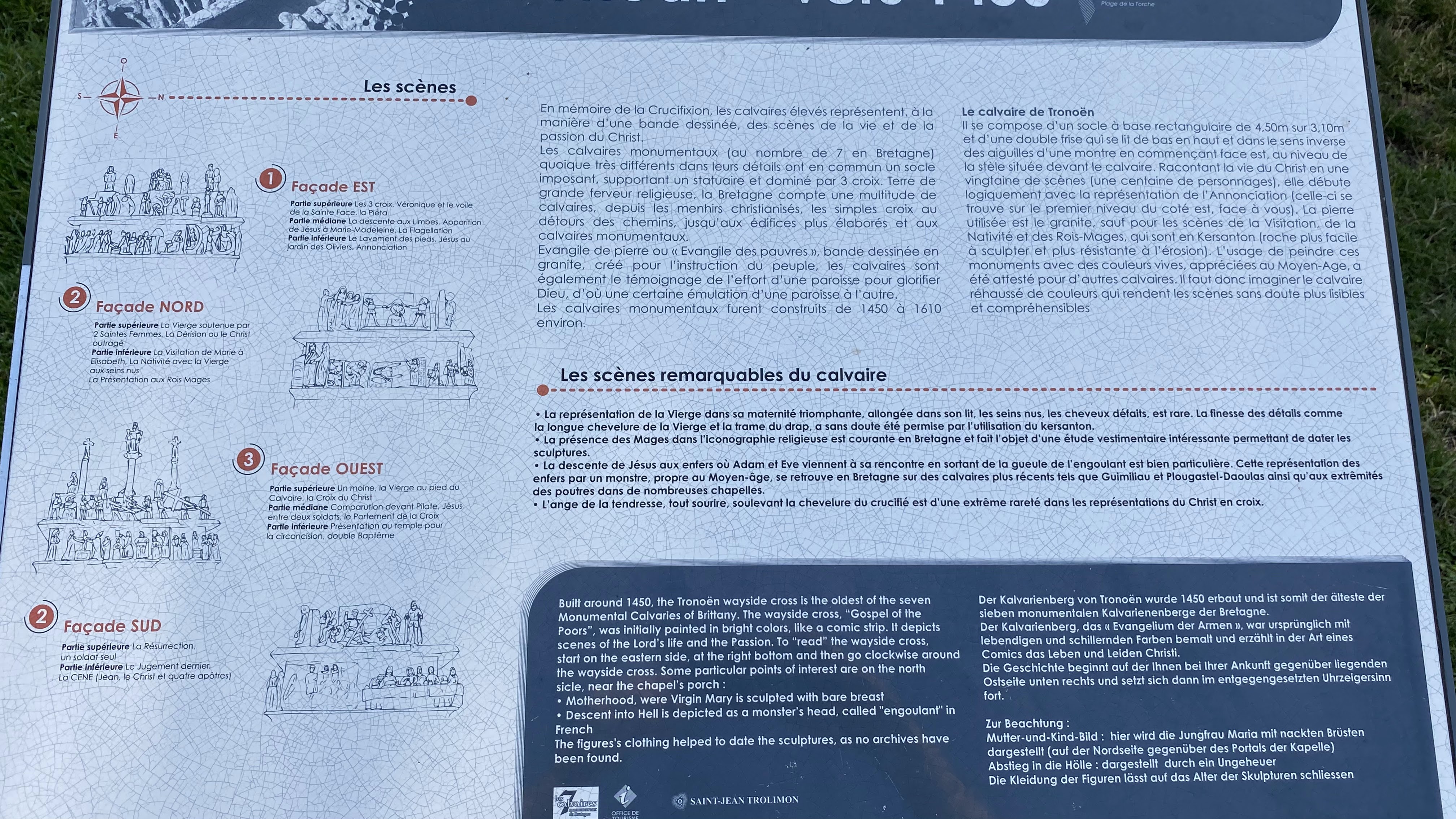 Fr Très bel enclos paroissial Merci à l'association qui promeut le patrimoine breton car des explications sont effectivement nécessaires pour comprendre le monument GB Beautiful Calvary in the churchyard Thanks to the association that is promoting the patrimony in Brittany because understanding the monument needs some explanation