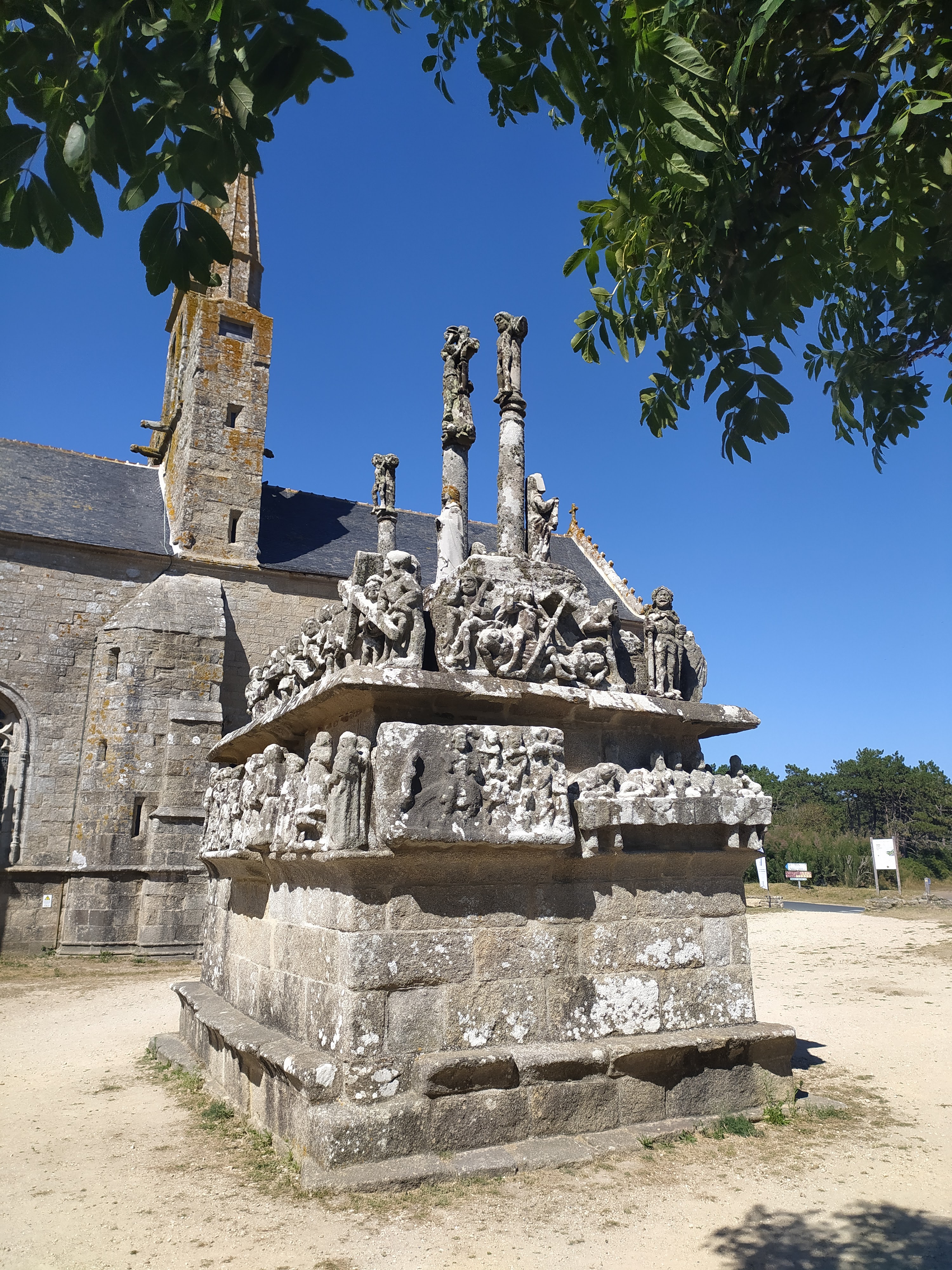 Premier calvaire monumental de Bretagne, datant d'avant la découverte des Amériques, c'est un réel catéchisme de pierre qui s'offre à vos yeux, sur les dunes de la baie d'Audierne, à 27 mètres de hauteur. À proximité, la chapelle plus ancienne de quelques décennies, offre la rareté d'être voûtée en pierre... Lieu visité par le couple Pompidou en 1971...